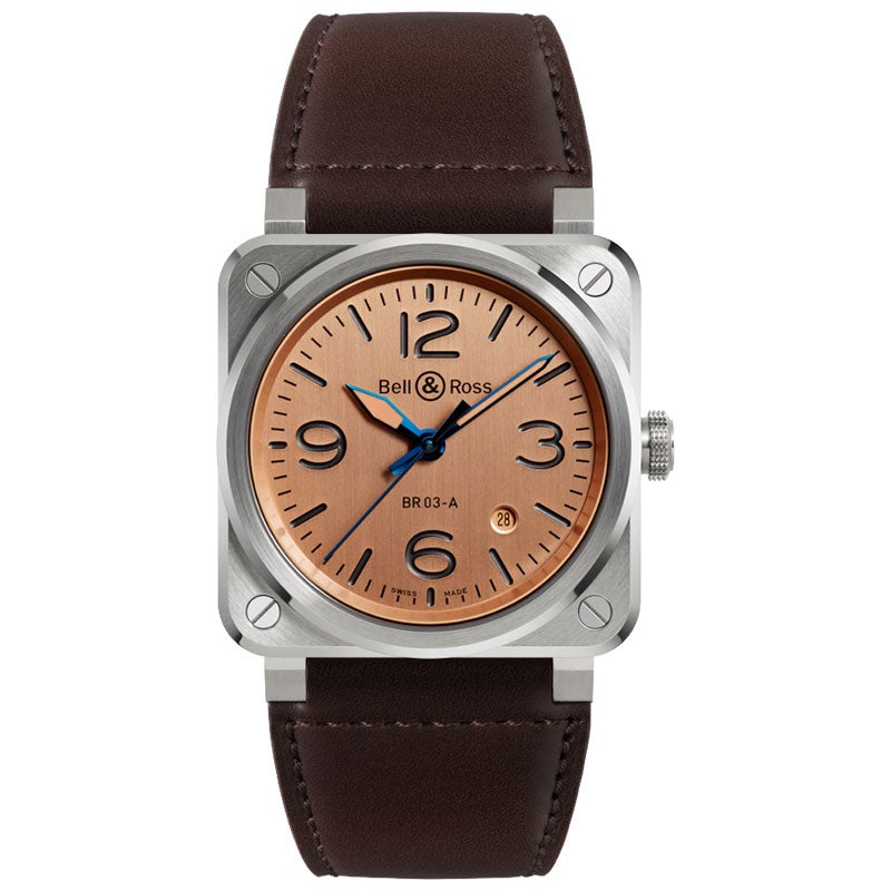 BR 03 コレクションは、ブランドのアイデンティティを統合し、「四角の中に丸、4 本のネジ」というアイコニックなデザインでそのスタイルを象徴しています。新しい BR 03 は、そのアイデンティティの規範に忠実に、最新世代のキャリバー BR CAL.302 による、わずかに縮小されたサイズと 54 時間のパワーリザーブを実現することで進化しています。