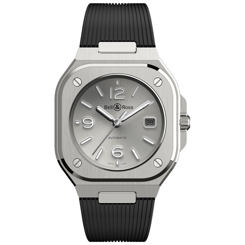 BR05では、その上質な仕上げが目を引きます。四角いケースの直径は40mmで、完璧にフラットな表面にはサテン仕上げが施されています。