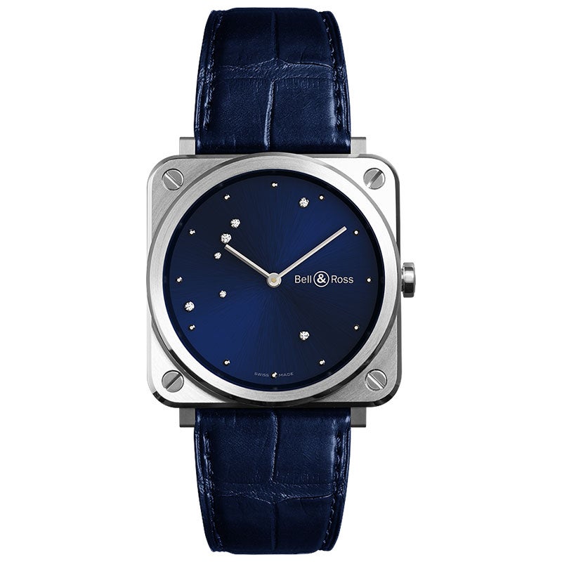 ナイトブルー。メタルアプライドのアワーリング。7 個のダイヤモンドによって表現される鷲座。