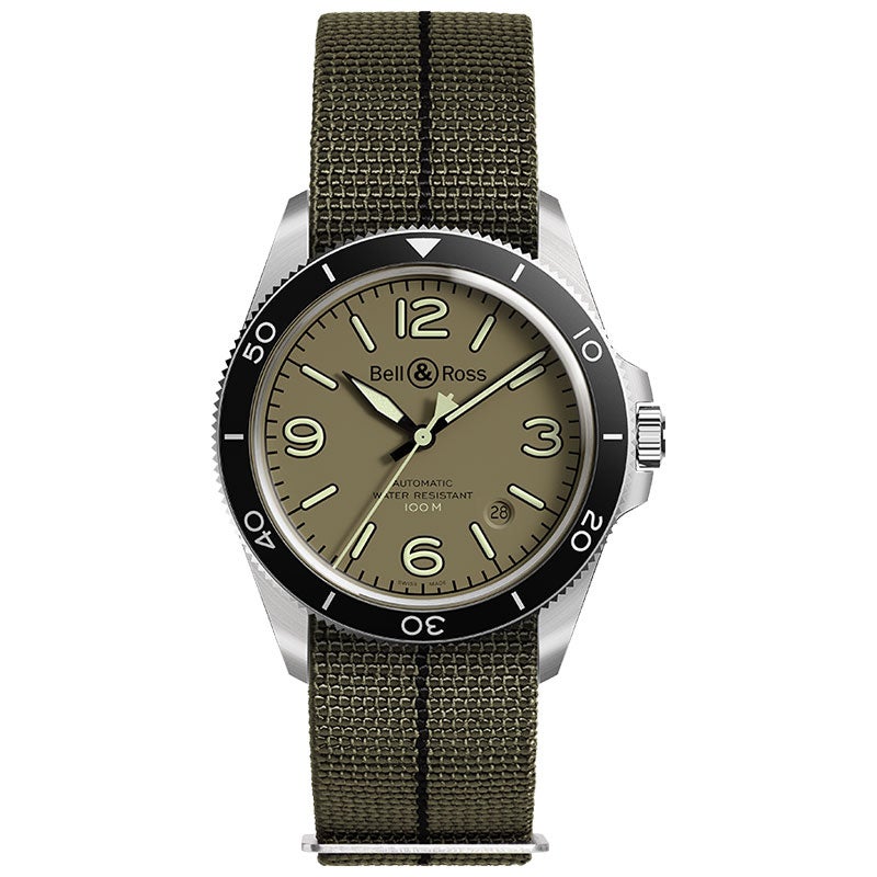 「本質を追究して無駄な演出をいっさい許さない」という信念のもと、Bell & Rossの時計職人とエンジニアはあらゆる用途に適した実用的なモデル、BR V2-92 Military Greenを設計しました。