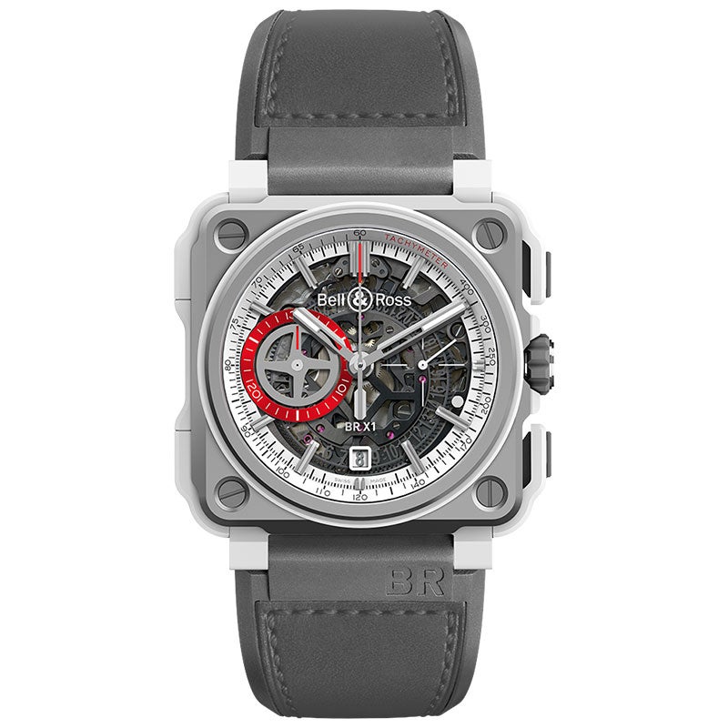BR-CAL.313. 自動巻き。X 型のアッパー ブリッジ。56 石、28,800 振動/時。スケルトン クロノグラフ。