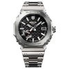 世界中で絶大な人気を誇る八角形フォルムの「2100」シリーズが、ついにG-SHOCKの最高峰ライン「MR-G」として登場しました。MRG-B2100D-1AJRは、薄型で洗練されたフォルムはそのままに、素材と仕上げを極限まで追求。複雑な形状のベゼルを27個ものパーツに細分化し、職人が隅々まで研磨を施すことで、溝の底まで美しい輝きを放つ芸術的な造形を実現しました。