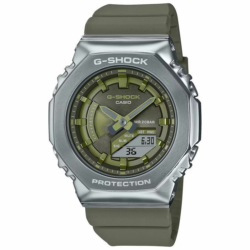 GA-2100シリーズの中でも、どんなシーンにもフィットするよう小型化、薄型化に徹底的にこだわったGMA-S2100をベースにベゼルカバー部分に硬質なステンレス素材を採用し質感を向上。文字板に沿って円周上に入れたヘアライン加工により、ベゼルのIP加工の濃淡を表現しています。また、フラットな文字板にも蒸着処理を施し、スタイリッシュな印象に。更にインデックスにはミラー加工を施し華やかさをプラスしています。初代から受け継がれるコンセプトはそのままに、時計としてのクオリティを追求し外装や装着性の進化に磨きをかけたスタイリッシュモデルです。