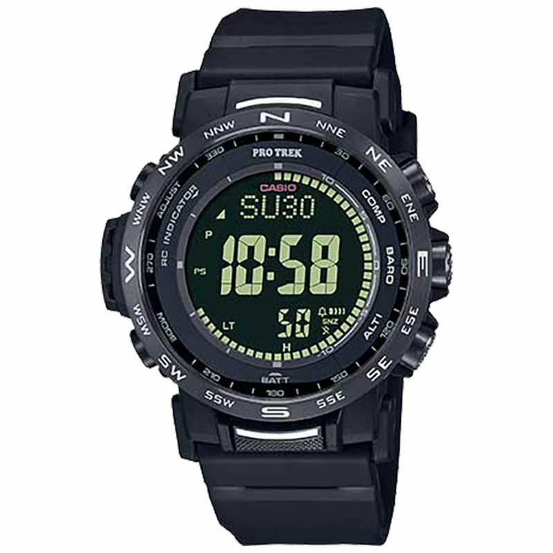 自然を愛する人の本格アウトドアギアPRO TREKクライマーライン。本モデルは環境に配慮されたエコ素材を採用し、直感的な操作が可能なデジタルウオッチです。ソフトウレタンバンドやケース、樹脂製の裏蓋にバイオマスプラスチックを使用。また、蒸れを防ぐスリット穴を設け腕への装着性を向上しました。大型のダイレクトボタンにより、方位、気圧/温度、高度をワンプッシュで直感的に計測、把握できます。また、STN液晶やボールドフォントを採用し、視認性を向上させています。計測機能に加えタフソーラーや電波受信機能、10気圧防水等の基本性能も搭載し、過酷なアウトドアシーンでも使用できます。※液晶画面外周の「■」は、登山記録データ機能の動作時に、高度記録の経過時間を表すマークです。