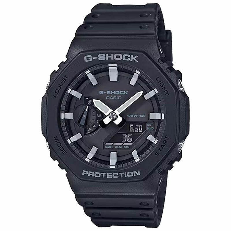 初代モデル“DW-5000C”にも採用された“八角形フォルム”を継承。タフな構造はそのままに無駄を省いたシンプルなデザインのコンビネーションモデルを開発しました。