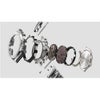 ベゼルとケースの間にファインレジン製の緩衝材を実装することで、メタル外装による耐衝撃構造を可能にしています。