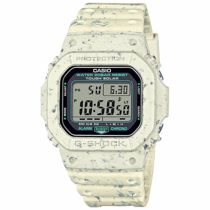 ベースモデルには、蛍光灯のわずかな光でも発電するタフソーラーを搭載したG-5600を採用し、廃棄樹脂を再活用したベゼルとバンドで、環境負荷低減に貢献することが期待されています。