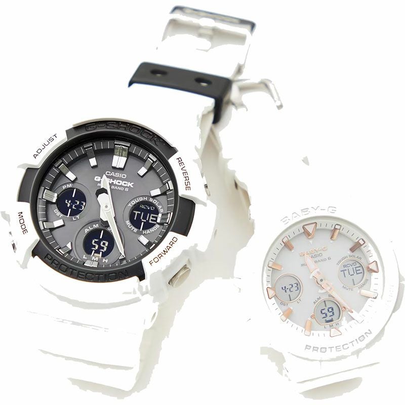 無骨なビッグケースがクールなG-SHOCKと、無駄をそぎ落とした曲線が美しいBABY-Gの組み合わせ。デイリーで使いやすいので、いつでもお揃いのものを身につけたいお2人に。