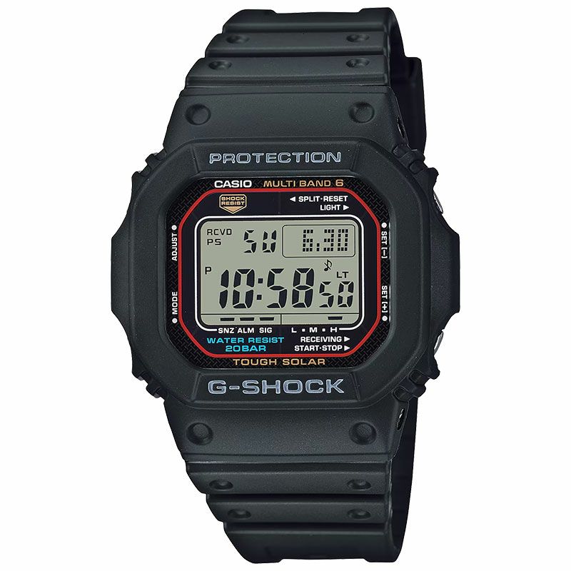 1983年に誕生したDW-5000Cのデザインを継承しているスクエアフェイス5600シリーズのマルチバンド6搭載モデルです。
