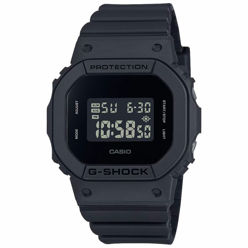オールブラックをテーマにしたG-SHOCKです。徹底的にブラックにこだわり、ワントーンでまとめました。マットな質感とシンプルな色使いが時計自体のフォルムを際立たせています。ファッションアイテム感覚で身につけられる、ソリッド感のあるデザインが個性的なモデルです。 ベゼル、バンドの主な樹脂パーツにバイオマスプラスチックを使用し、環境にも配慮しました。