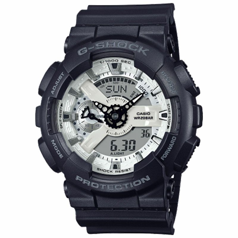1983年の発売以来、飽くなき強さを求めて進化を続けるタフネスウオッチG-SHOCKから、ブランドカラーのブラックにホワイトの文字板を組み合わせ、クリーンな印象にまとめたBlack and brilliant whiteシリーズです。 マットなブラックボディに光沢感のあるホワイト文字板でモノトーンにまとめて、リッチな印象を与える仕上がりになっております。 落ち着いた色使いで、スタイルを問わずオールマイティに活用できるクールなデザインです。
