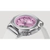 上品なカラーダイアルにホワイトバンドを調和させたモデルです。 八角形フォルムのメタルベゼルはヘアライン仕上げを施し質感を高めています。文字板にもメタル素材を使用し華やかな印象を与えます。インデックスや液晶部の形状をすっきりとフラットに仕上げました。 バンドの主な樹脂パーツにバイオマスプラスチックを採用。身につけやすいサイズ感で腕の細い方でも快適に着用できます。 メタルの華やかで美しい輝きが腕元に上品な彩りをプラスします。