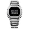 1983年の発売以来、飽くなき強さを求めて進化を続けるタフネスウオッチG-SHOCKから、やわらかい着け心地とメタルの煌びやかな質感を両立したモデルです。 メタルベゼルを採用しワントーンでまとめました。バンドにはスケルトンの樹脂に裏から蒸着処理を行い、やわらかく肌触りのよいシリコーン樹脂を張り合わせ、メタルの質感に近い輝きを放ちます。ファッションアイテムとしても幅広く活用できるクールなデザインに仕上げました。 遊環も、シルバーのメタル遊環を採用したこだわりのデザインとなっております。