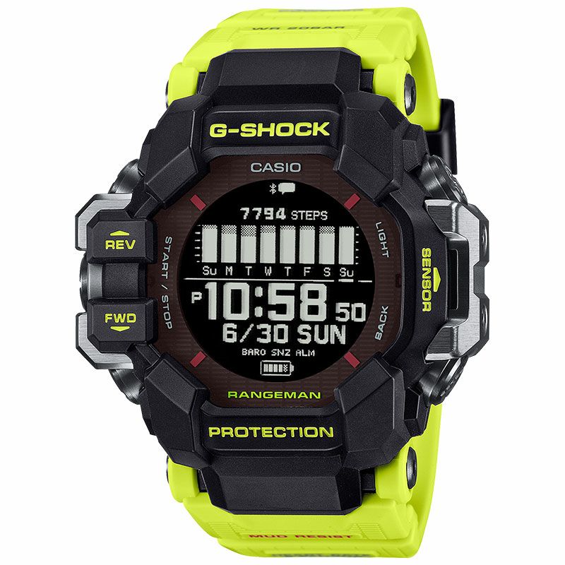 ベースモデルに、空と陸の活動を支えるGRAVITYMASTERとMUDMAN、RANGEMANを採用し、タフネスを象徴するブラックボディにコーションカラーのイエローをバンドに合わせました。