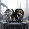 ケース素材には、ファインレジンを使用。メタルバンドで、幅広いストリートシーンにも対応できる仕様になっています。