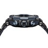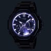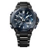 G-SHOCKの起源である樹脂素材とメタル素材を融合して、革新的な構造美を追求するMT-Gシリーズ。モジュールを保護するカーボンモノコックケースと、外装を覆うメタルパーツによる「デュアルコアガード構造」により、軽量かつ高い耐久性を実現。ステンレススチール製のトップベゼルやボタンなどのパーツにはブルーグレーIP加工を施し、ブラックとのバイカラーで仕上げました。側面のベゼルフレームにはカーボン素材を採用。カーボンファイバーとブルーグラスファイバーシートを積層して成形。最上層のカーボンは要所で補強され、ラグ部分にはカーボンシートを巻き付け、さらに耐久性を向上させています。透明度の高いサファイアガラスや繊細なデザインが施されたダイアルにより高級感を演出。交換可能な「レイヤーコンポジットバンド」は、軽量化とメタルの質感向上を両立しました。また、Bluetooth?通信機能により専用アプリと連携し、時刻情報を取得。マルチバンド6、タフソーラー、LEDライトなど、実用性も備えたモデルです。