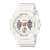 コーディネートに鮮やかなアクセントをプラスする、スタイリッシュでスポーティなシリーズです。ホワイトのベーシックカラーにスポーツアイテムに見られる発色のよいアクセントカラーをあしらい、カラーコントラストの効いたクールな印象に仕上げました。着ける人を選ばないコンパクトサイズで、スポーティミックスの着こなしを楽しめます。立体パーツで凹凸感を強調したユニークな文字板を、爽やかなホワイトのワントーン仕上げに。針にもホワイト蓄光を施しました。オレンジのアクセントカラーが、夏らしい開放感を演出します。ベゼル、バンドの主な樹脂パーツにバイオマスプラスチックを使用しました。