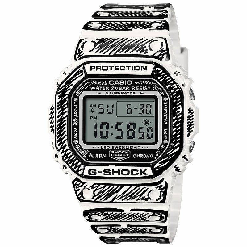 スクエアフォルムが人気の「DW-5600」に、Joshua Videsならではのモノトーンを基調としたコミックタッチのグラフィックをフェイス部からベゼル、バンドまで時計全体に配しました。