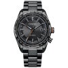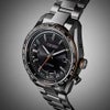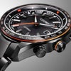 多様化するビジネススタイルに合わせ、スーツスタイルとカジュアルの両方で使える、力強く軽快なデザインの「ACT Line」。バランスよく存在感のあるサイズが特徴の3針モデルです。パーツを重ねた3体構造の文字板がアクティブな表情を演出。外から内への段差で立体感を強調するとともに、テーパーをつけたインデックスで中心に向かって力が凝縮していく動きを表現しています。ブラックのケース、文字板の中で、アクティブさを感じさせるオレンジの差し色が印象的な1本です。