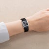 やや丸みをおびたスクエアケースと大胆にカットされたサファイアカーブガラス、白蝶貝の文字板がタイムレスでエレガントなデザインを表現したモデル。文字板にはアラビア数字のインデックスを採用。サファイアカーブガラスのカット位置を調節して映り込みを減らし、視認性が向上しました。