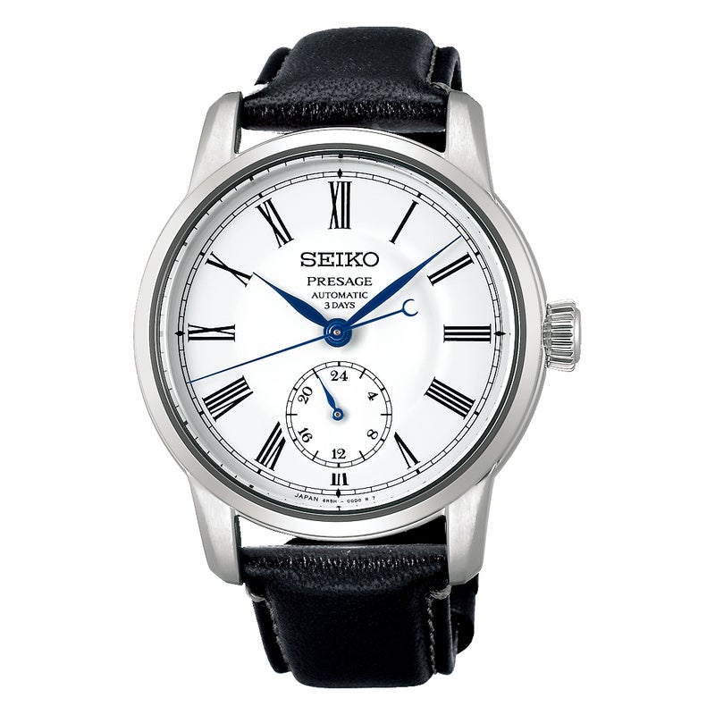 セイコー プレザージュ SART009は、永く色褪せない美しい白色の琺瑯ダイヤルと、黒色ローマ数字インデックスのコントラストが際立つクラフツマンシップシリーズの自動巻き腕時計です。