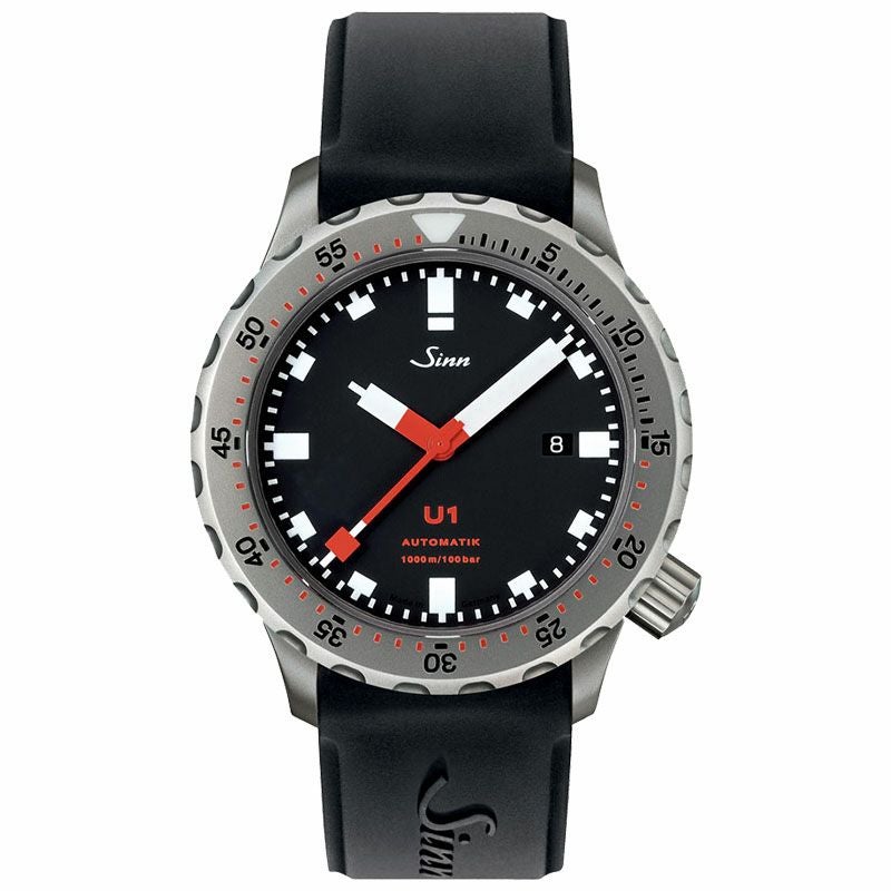 モデルU1は、時・分・秒と日付表示のみの基本モデルで、1,000mの耐圧テストをクリアしているプロフェッショナルダイバーズウォッチです。