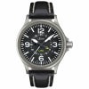 モデル856はコックピット内のパイロットにとって最も重要な極限状態でのダイヤルの視認性を確保するため、コックピットクロックのデザインを映し、UTC(デュアルタイム)機能を付加。さらにテギメント加工されたステンレスケースを使用することで、セラミックと同じ1200ビッカースの高硬度を実現した耐傷性能を持つ高スペックモデルです。このシリーズの特徴のひとつであるマグネチック・フィールド・プロテクションによる驚異の80,000A/mという防磁性も備えています。