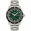 光の加減によって色合いが変わるメタリックグリーンダイヤルとバーインデックスが特徴の104.ST.SA.IGは、伝統的なジンスタイルでデザインされたパイロットウォッチです。時刻、日付や曜日、秒の視認性を高めるために明確な構造で設計されています。 ポリッシュ仕上げのステンレススチール製ケースに両面無反射サファイアクリスタルを搭載し、裏面も内側に無反射コーティングを施したシースルーバックを採用。機械式ムーブメントの正確さを堪能することができます。1分刻みで両方向に回転するパイロットベゼルは、特殊結合方式で固定されているため外れる心配がありません。20気圧の防水性と負圧耐性も備えています。